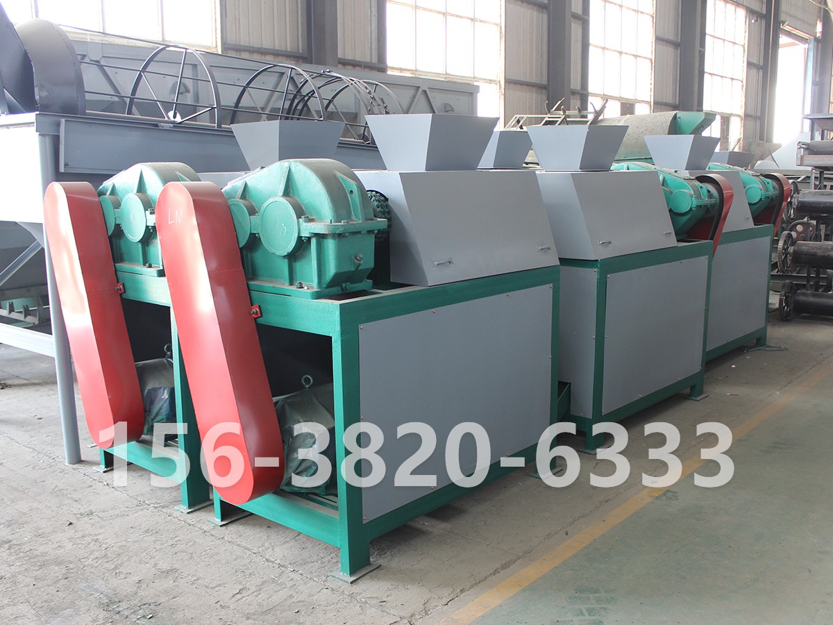 干粉通過螺旋輸送機(jī)、皮帶機(jī)或人工搬運(yùn)進(jìn)入提升機(jī)的原料倉,由斗式提升機(jī)將原料粉末送人振動式過度料倉,經(jīng)過定量加料裝置將物料均勻地加入變頻式強(qiáng)制喂料機(jī),對物料進(jìn)行脫氣預(yù)壓縮,經(jīng)預(yù)壓縮的物料被壓人兩個相對的壓輥中間進(jìn)行壓實,被壓實的條片物料自動脫槽后進(jìn)入破碎,被粉成大小不均的顆粒,然后進(jìn)入雙刀造粒機(jī)進(jìn)行修整,修整后的顆粒通過分篩,產(chǎn)品顆粒經(jīng)過打包或用輸送機(jī)輸入成品料倉,篩分下來的粉狀物料經(jīng)回料裝置輸入原料提升機(jī),進(jìn)行二次加工。